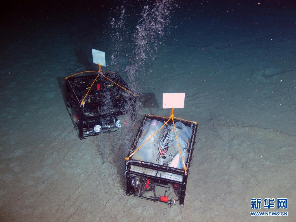 这是放置在海底的深海底部生物地球化学原位实验系统。
