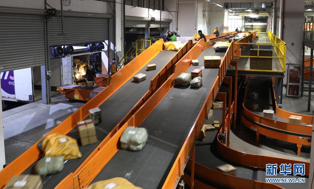 4月15日,在圆通快递上海转运中心,纵横交错的传送带将当天发送的快递包裹源源不断地输送到指定装车口。