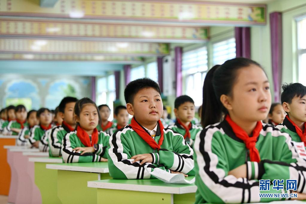 4月16日,河北省滦州市第三实验小学学生在“红领巾讲党史”主题实践活动上听同学讲述党史故事。