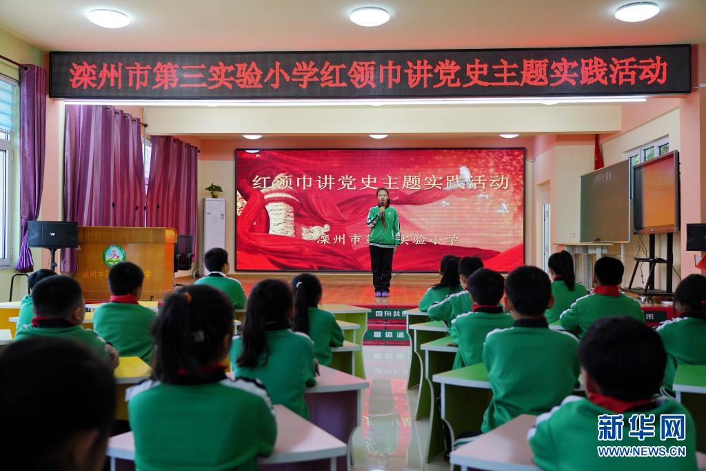 当日,河北省滦州市第三实验小学举行党史教育进校园主题活动,通过举办“红领巾讲党史”故事会、参观校内党史展台、听老党员讲述党史故事等活动,向学生普及党史知识。