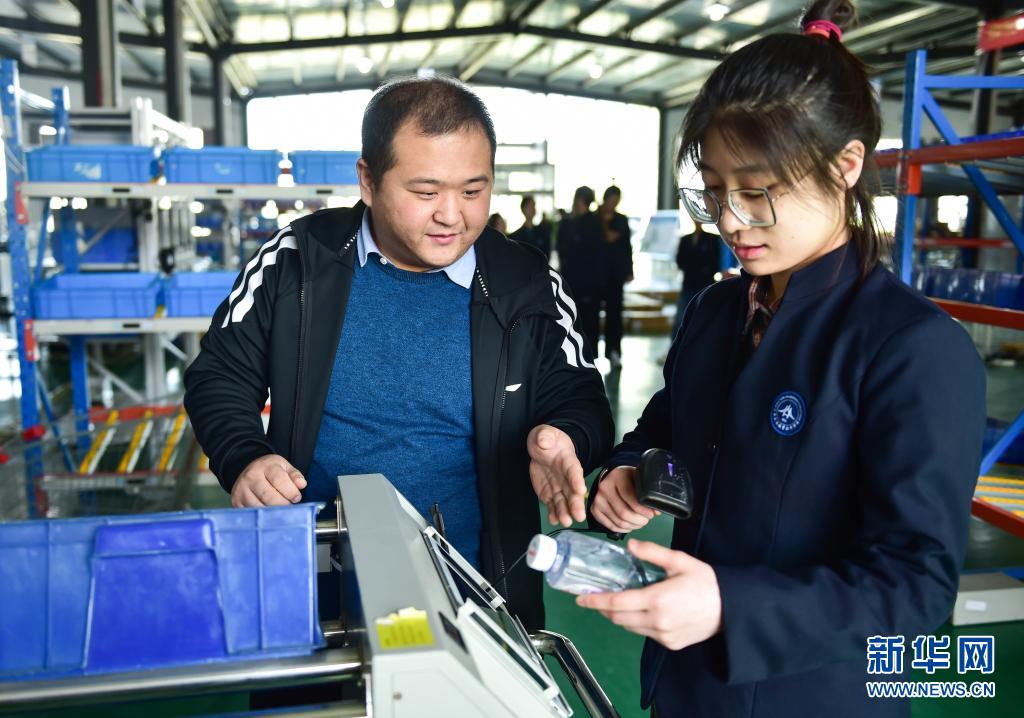 4月14日,在山西工程科技职业大学,老师在指导学生使用智能拣货台车。新华社记者 柴婷 摄