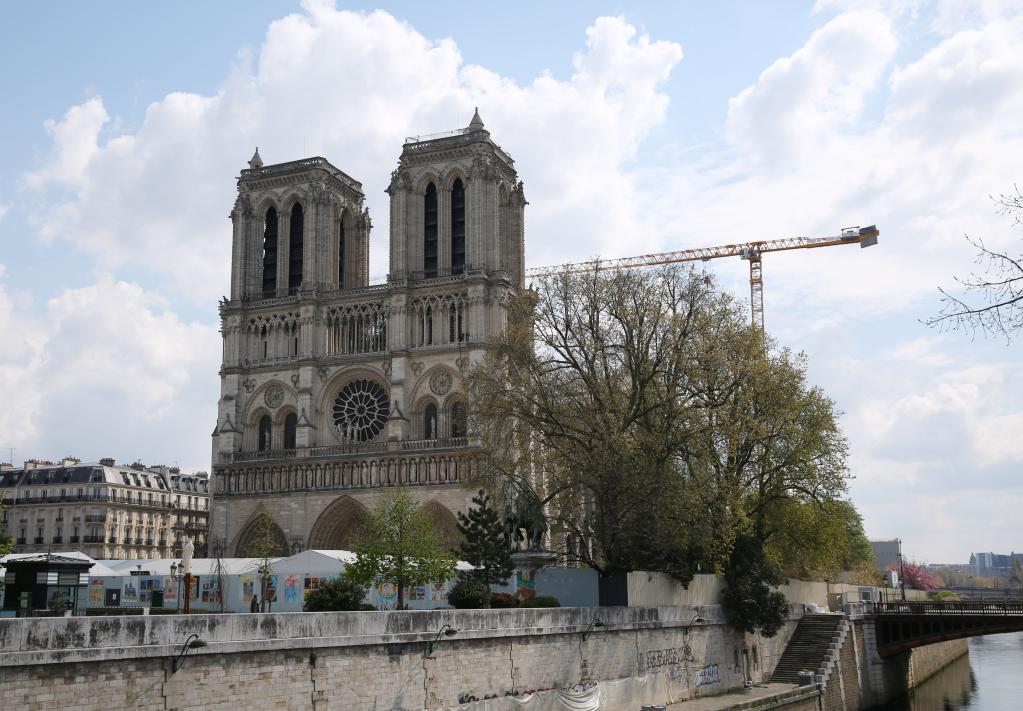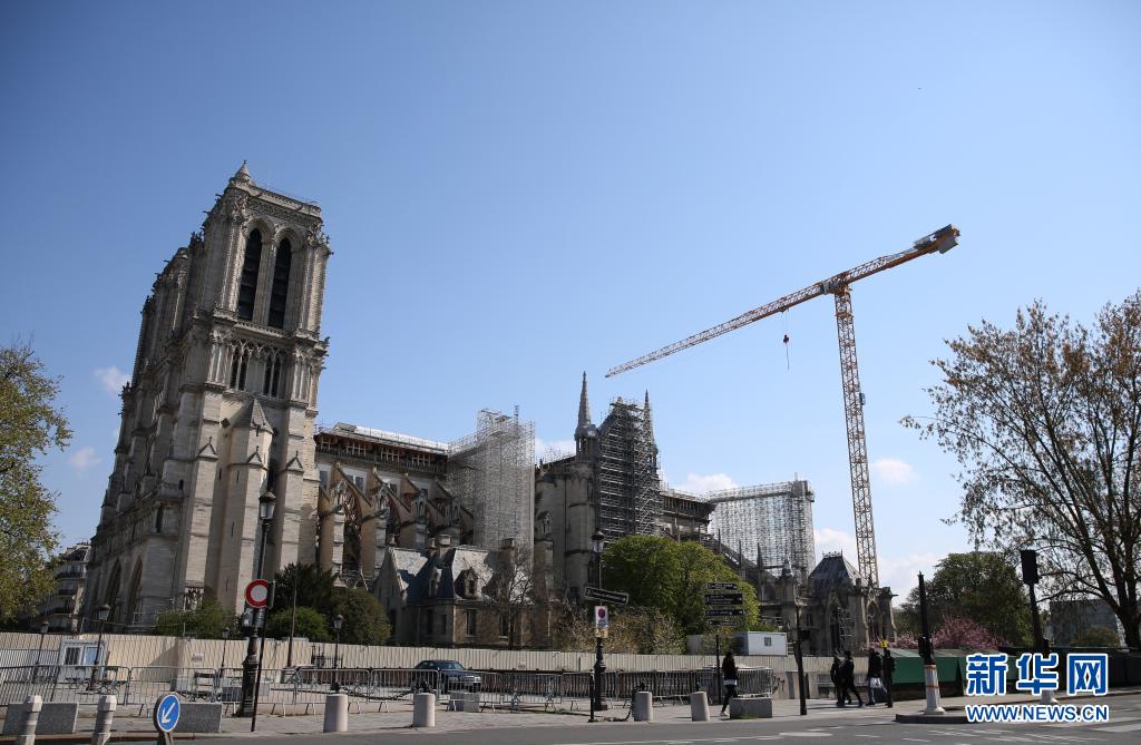 这是4月16日在法国巴黎拍摄的修复中的巴黎圣母院。
