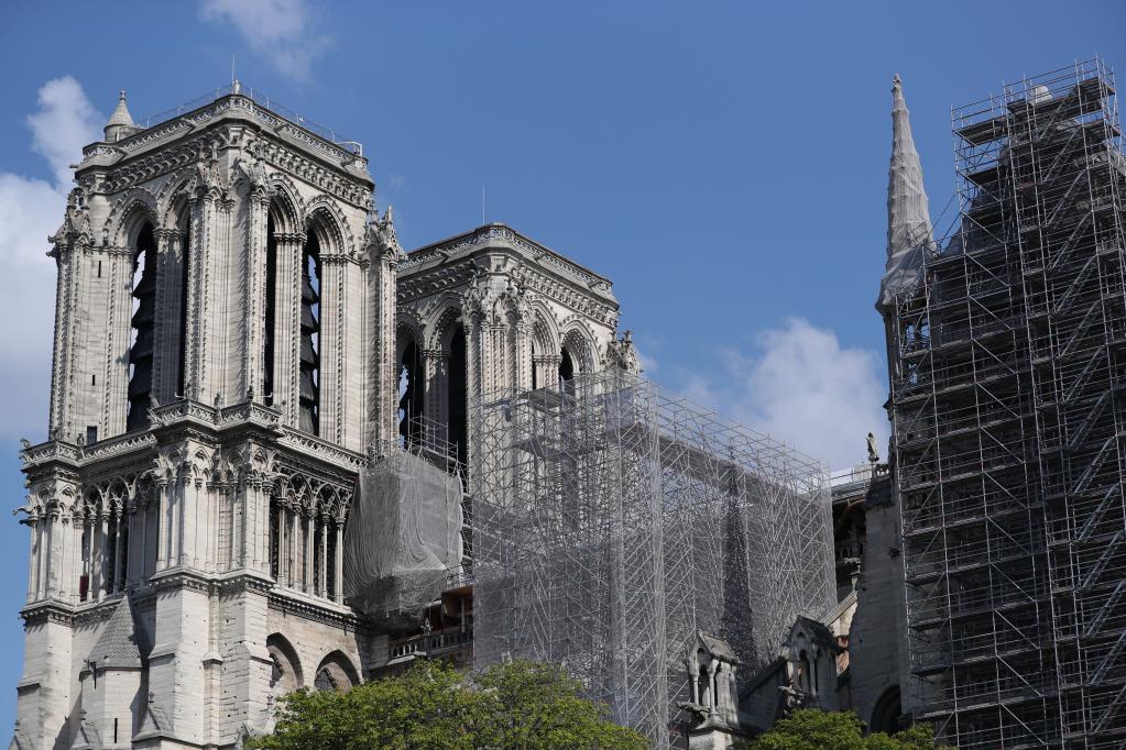 这是4月16日在法国巴黎拍摄的修复中的巴黎圣母院。