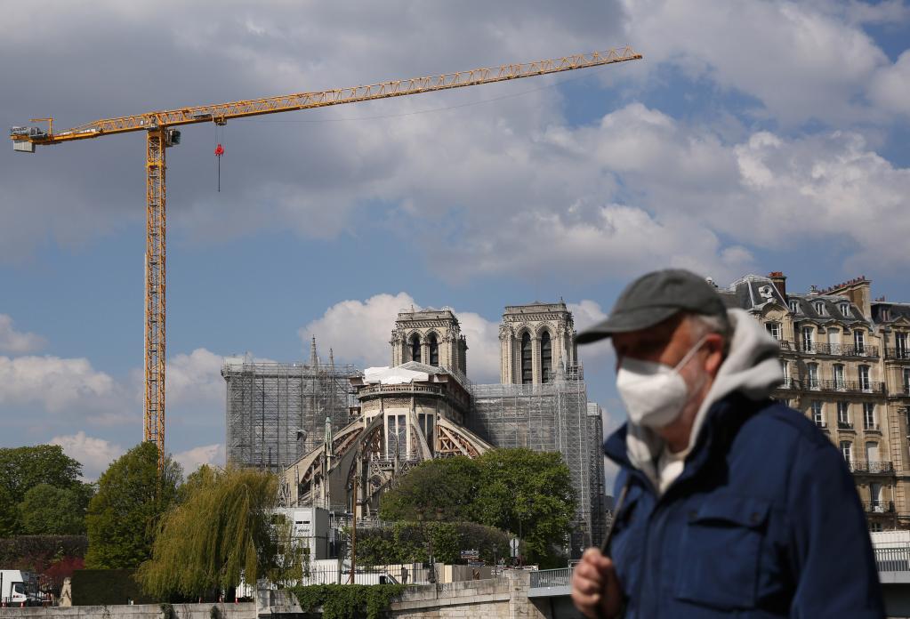 4月16日,一名男子走在法国巴黎圣母院附近。