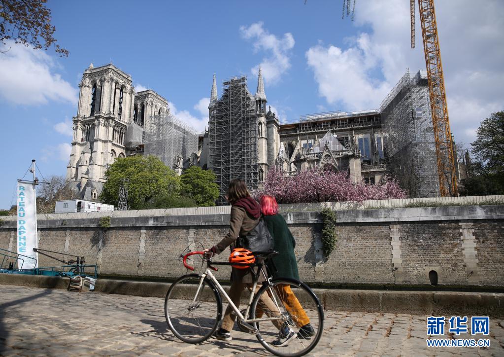 4月16日,人们望着修复中的法国巴黎圣母院。