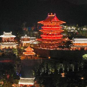灯光秀、崖壁沉浸式光影演艺……夜幕下位于南京的江苏园博园流光溢彩、美轮美奂。