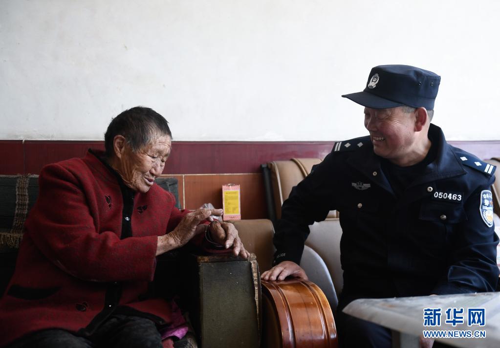 4月16日,在寺沟景区警务室辖区内的珠固乡寺沟村东海社,赵延寿在老百姓家里了解情况。新华社记者 张龙 摄
