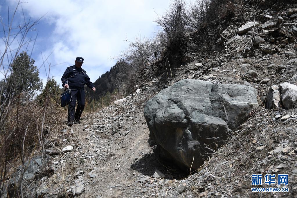 4月16日,在寺沟景区警务室辖区内的珠固乡寺沟村,赵延寿进村提供警务服务。新华社记者 张龙 摄