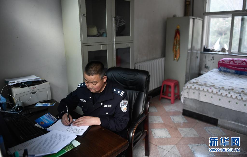 4月15日,在寺沟景区警务室,赵延寿在记录巡查情况。新华社记者 张龙 摄