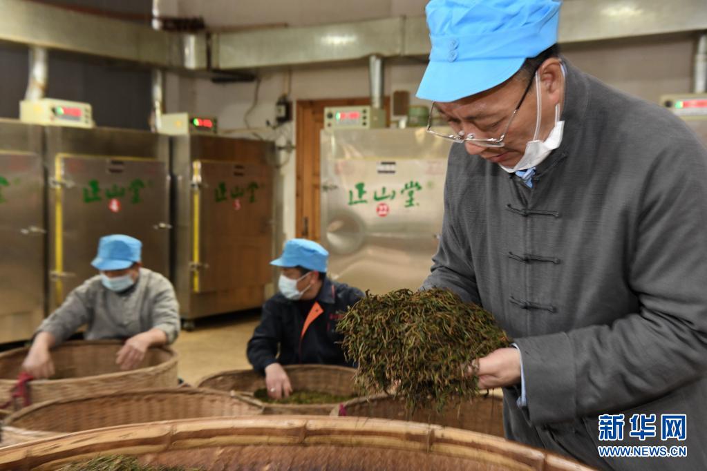 4月16日,福建省红茶制作技艺传承人江元勋(右)在制作正山小种红茶。
