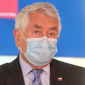 4月16日,智利卫生部长帕里斯(右)与智利卫生部顾问阿劳斯在圣地亚哥出席发布会,公布科兴疫苗保护效果数据。