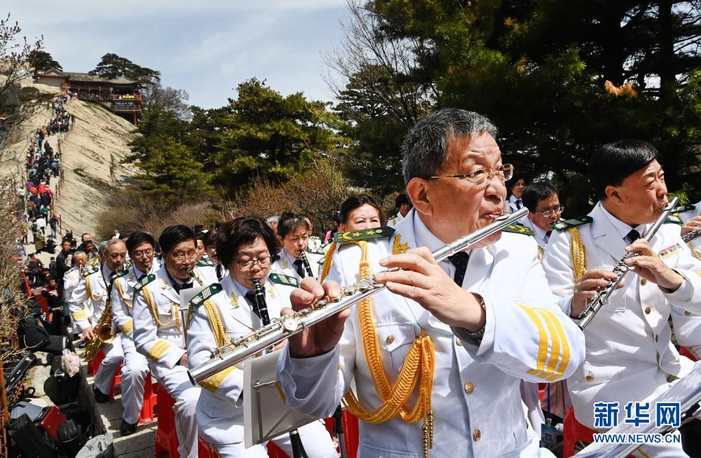 4月17日,铜管交响乐团在华山之巅演奏《我和我的祖国》。