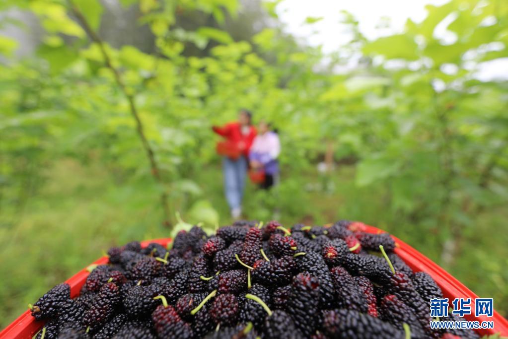 近日,贵州省赤水市大同镇民族村鲜果采摘基地的桑葚陆续成熟,吸引众多市民和游客前来采摘。近年来,赤水市大同镇积极推进农业产业和乡村旅游融合发展,引导农民发展桑葚采摘等特色休闲体验农业,助力农民增收。