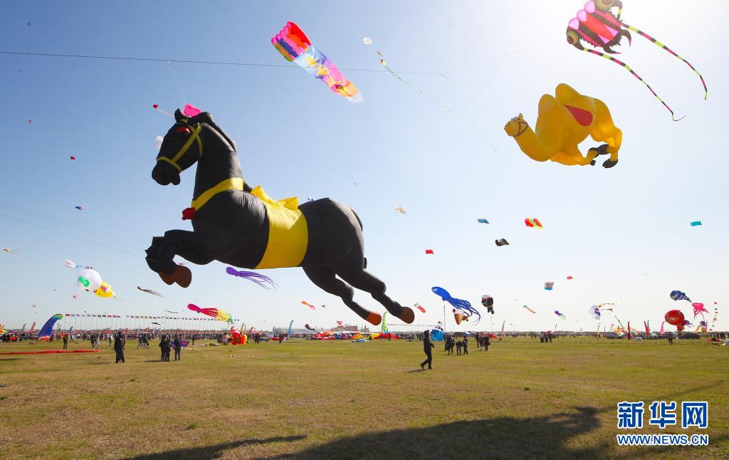 新华全媒+|第38届潍坊国际风筝会放飞比赛举行