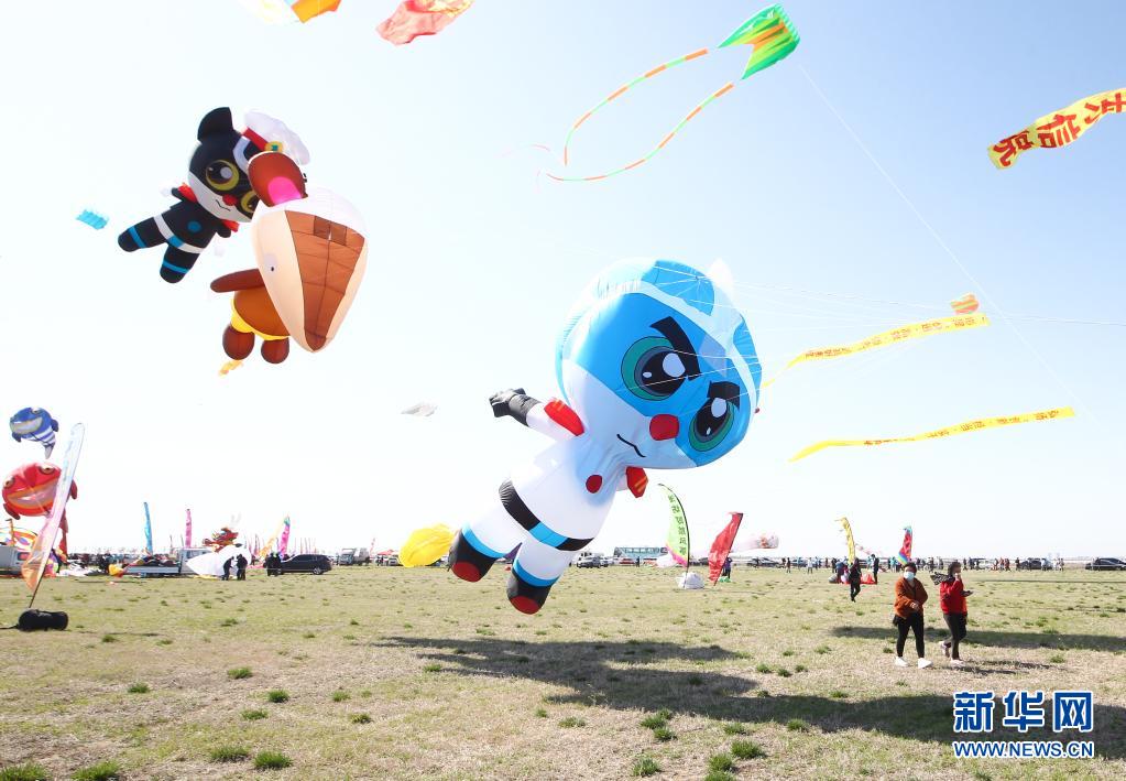 当日,第38届潍坊国际风筝会放飞比赛在山东潍坊滨海国际风筝放飞场举行,来自全国各地的多支风筝放飞队参加比赛。