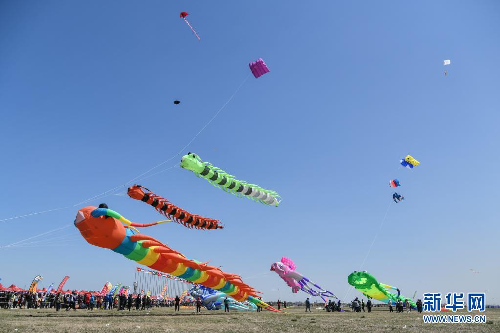 当日,第38届潍坊国际风筝会放飞比赛在山东潍坊滨海国际风筝放飞场举行,来自全国各地的多支风筝放飞队参加比赛。