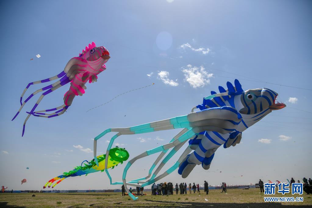 当日,第38届潍坊国际风筝会放飞比赛在山东潍坊滨海国际风筝放飞场举行,来自全国各地的多支风筝放飞队参加比赛。
