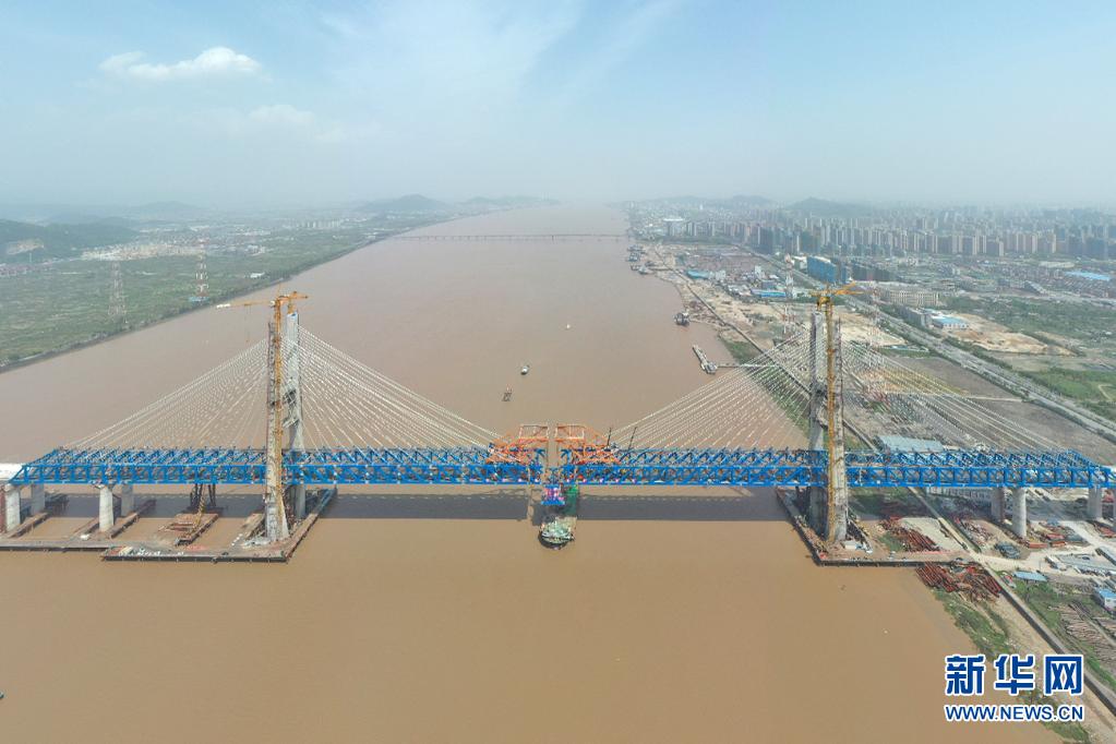 当日,在浙江台州的杭绍台铁路建设施工现场,随着最后一片钢梁吊装完成,杭绍台铁路控制性工程椒江特大桥顺利合龙。