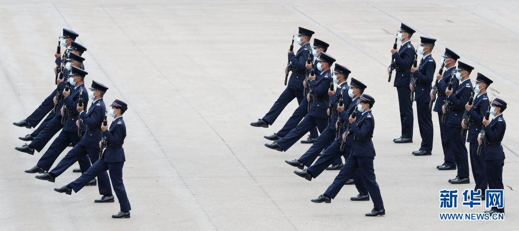 在香港警察学院,香港警察仪仗队首次表演中式步操(4月15日摄)。新华社记者 李钢 摄