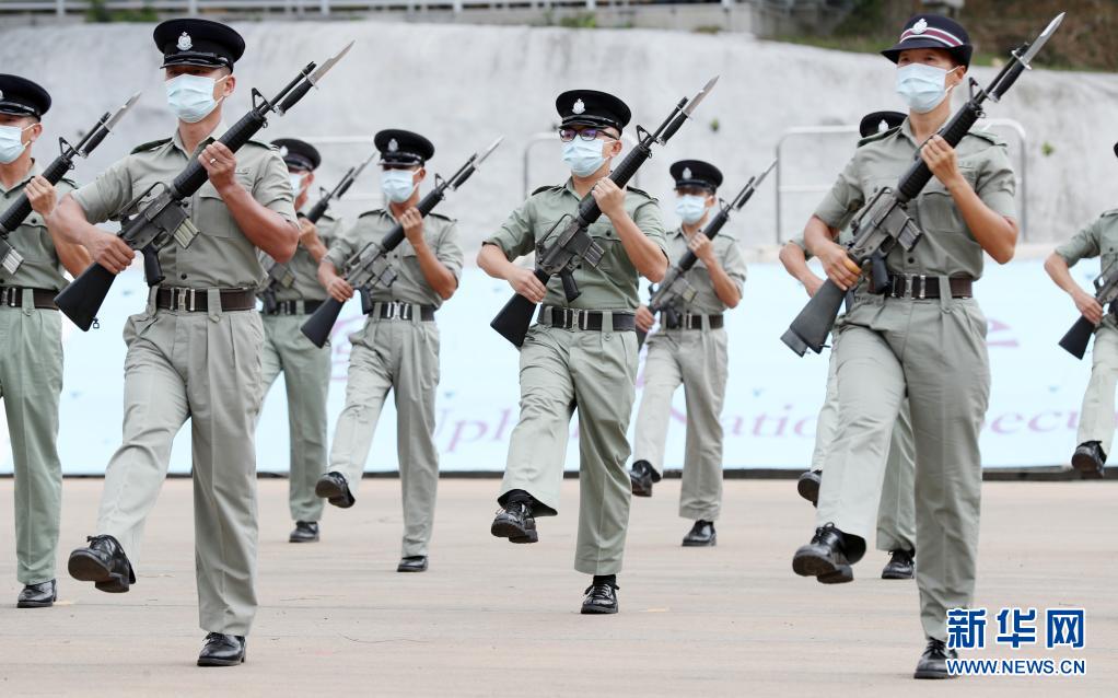 在香港警察学院,香港警察仪仗队在进行中式步操训练(4月14日摄)。新华社记者 李钢 摄