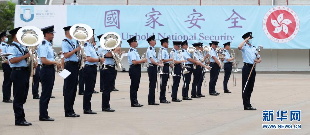 在香港警察学院,警察乐队在训练中(4月14日摄)。新华社记者 李钢 摄