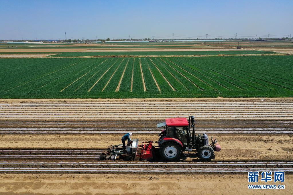 随着气温升高,河北省滦州市20余万亩花生进入播种期,农民们利用晴好天气开展播种作业。