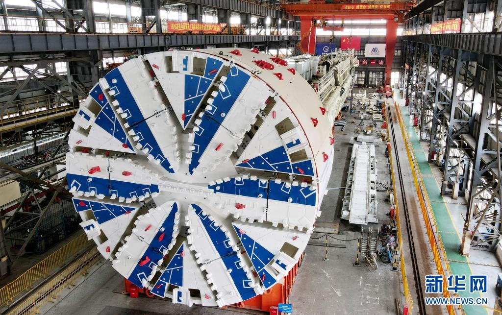 这是上海隧道机械制造分公司车间内的“骥跃”盾构机(4月13日摄无人机照片 )。