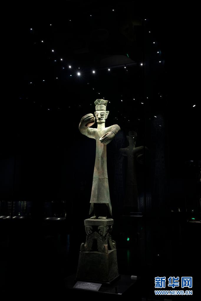 这是在位于四川省广汉市的三星堆博物馆拍摄的1986年出土于三星堆2号“祭祀坑”的青铜大立人(3月17日摄)。新华社记者 沈伯韩 摄