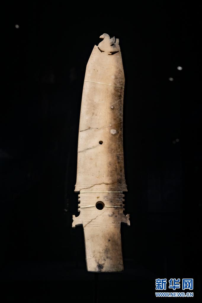 这是在位于四川省广汉市的三星堆博物馆拍摄的1986年出土于三星堆1号“祭祀坑”的玉璋(3月17日摄)。新华社记者 沈伯韩 摄