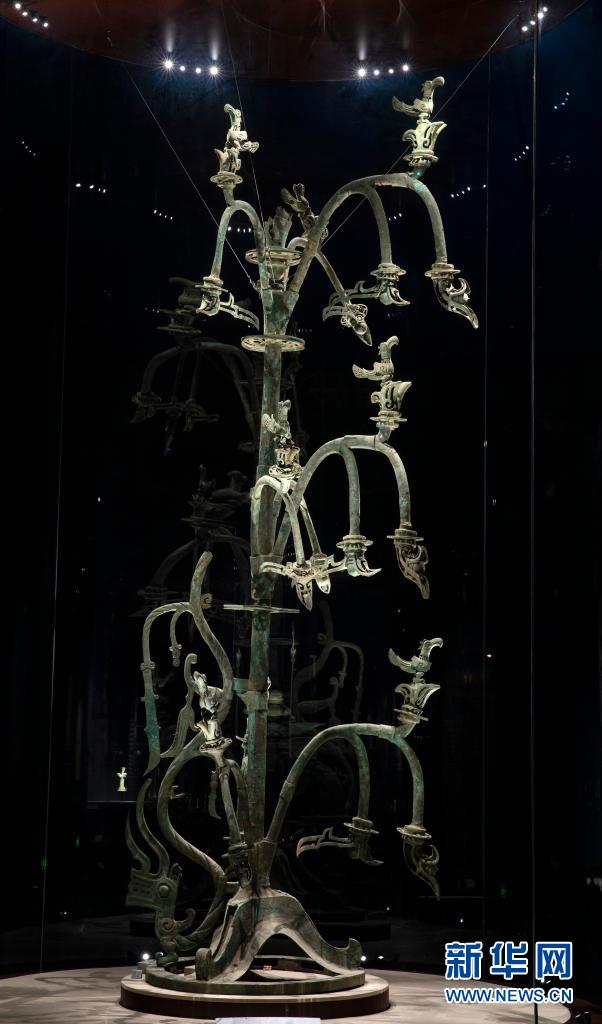 这是在位于四川省广汉市的三星堆博物馆拍摄的1986年出土于三星堆2号“祭祀坑”的青铜神树(3月17日摄)。新华社记者 沈伯韩 摄
