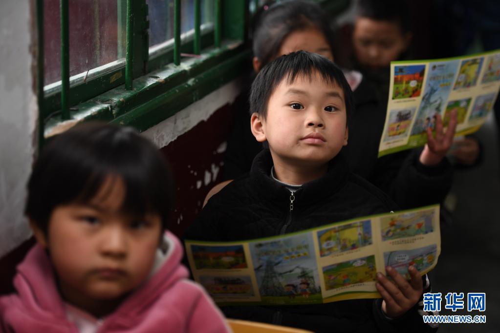 4月14日,湖南省常德市石门县壶瓶山镇南坪完小的学生在听壶瓶山供电所工人科普安全用电知识。