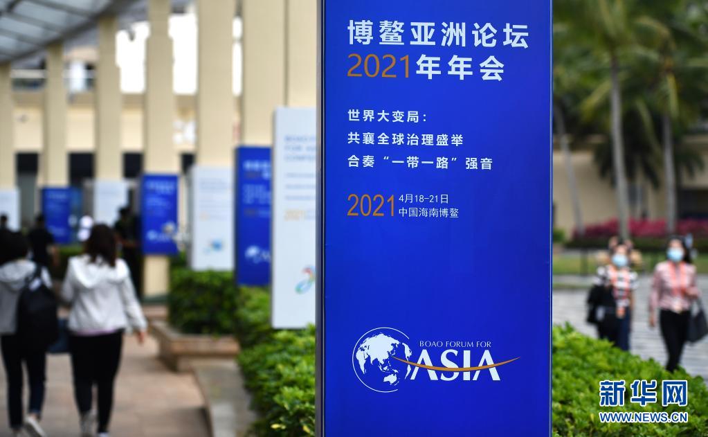 4月18日,参会人员走过博鳌亚洲论坛国际会议中心分会场通道。