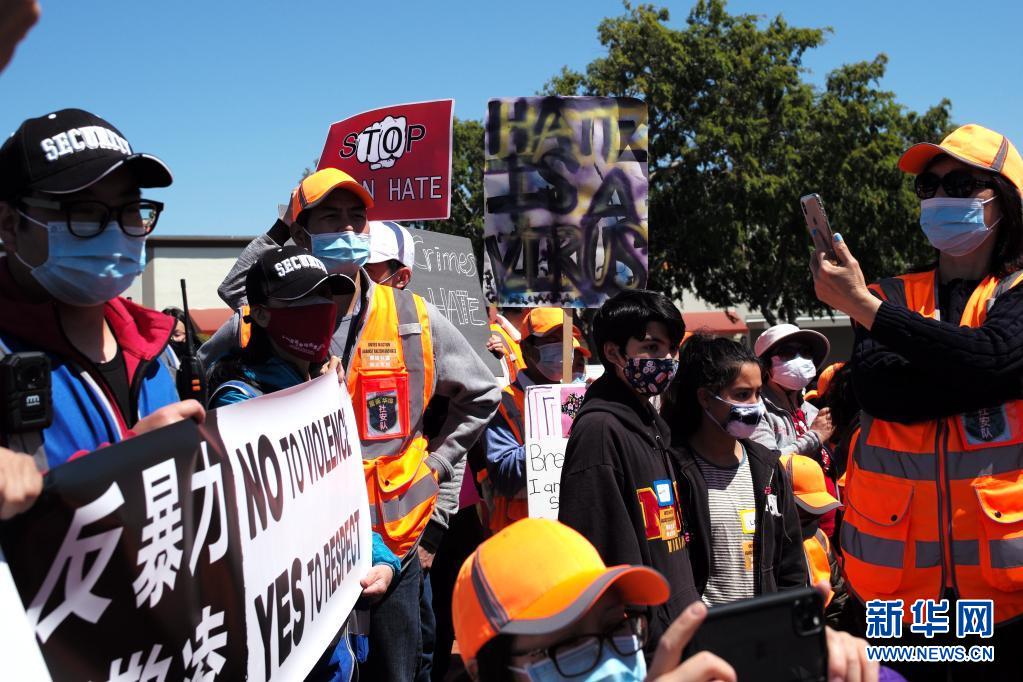 当日,民众在美国加利福尼亚州旧金山湾区米尔布雷市举行集会,抗议针对亚裔的歧视行为和仇恨犯罪。