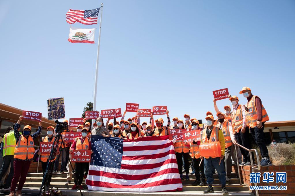 当日,民众在美国加利福尼亚州旧金山湾区米尔布雷市举行集会,抗议针对亚裔的歧视行为和仇恨犯罪。