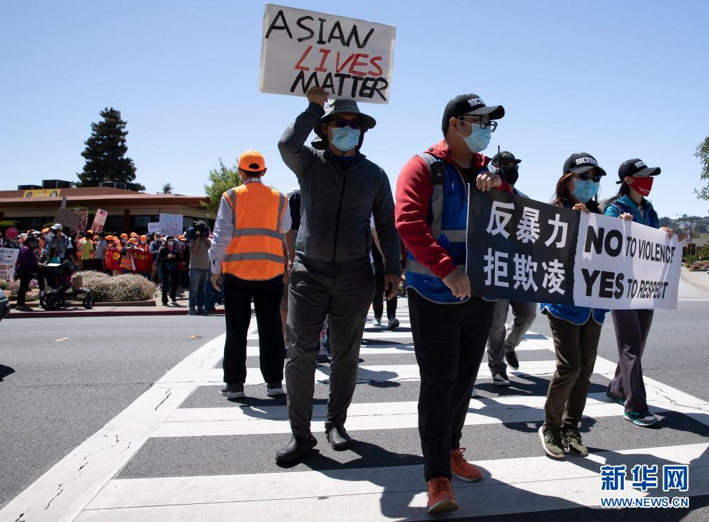当日,民众在美国加利福尼亚州旧金山湾区米尔布雷市举行集会,抗议针对亚裔的歧视行为和仇恨犯罪。