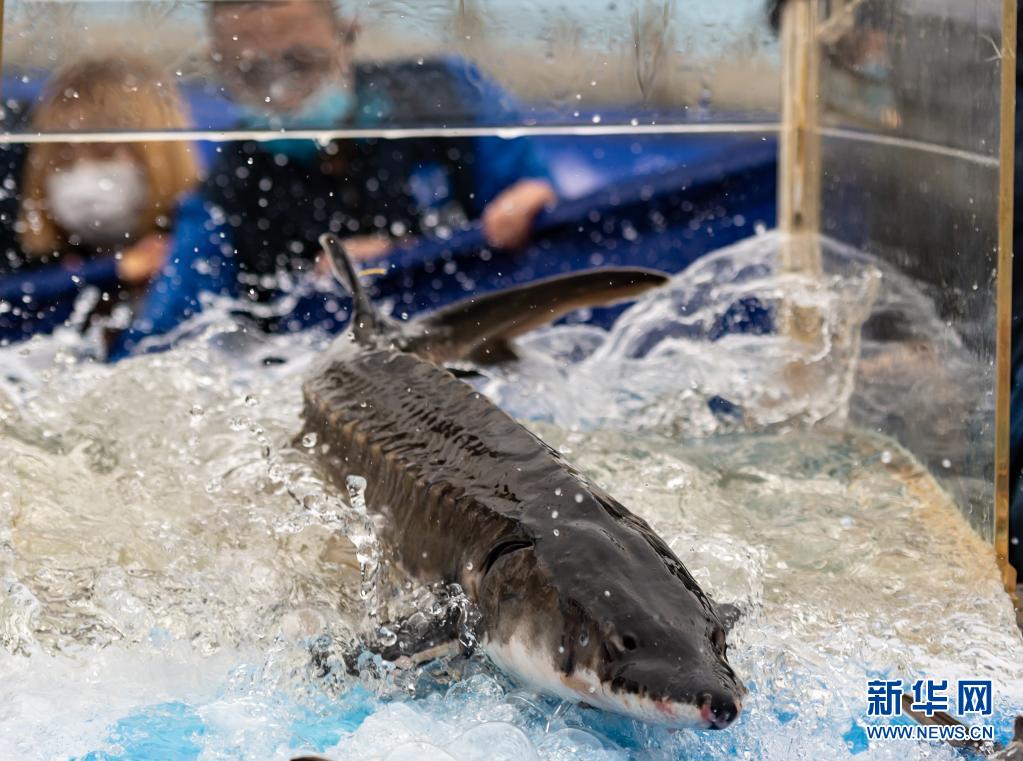 4月10日,中华鲟从放流通道滑入长江。当日,“2021年长江三峡中华鲟增殖放流活动”在湖北宜昌举行,共放流5个年龄梯队的子二代中华鲟10000尾,总重量约13130kg。
