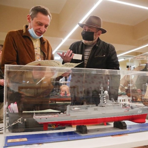 4月18日,人们在俄罗斯首都莫斯科参观各类舰船模型。