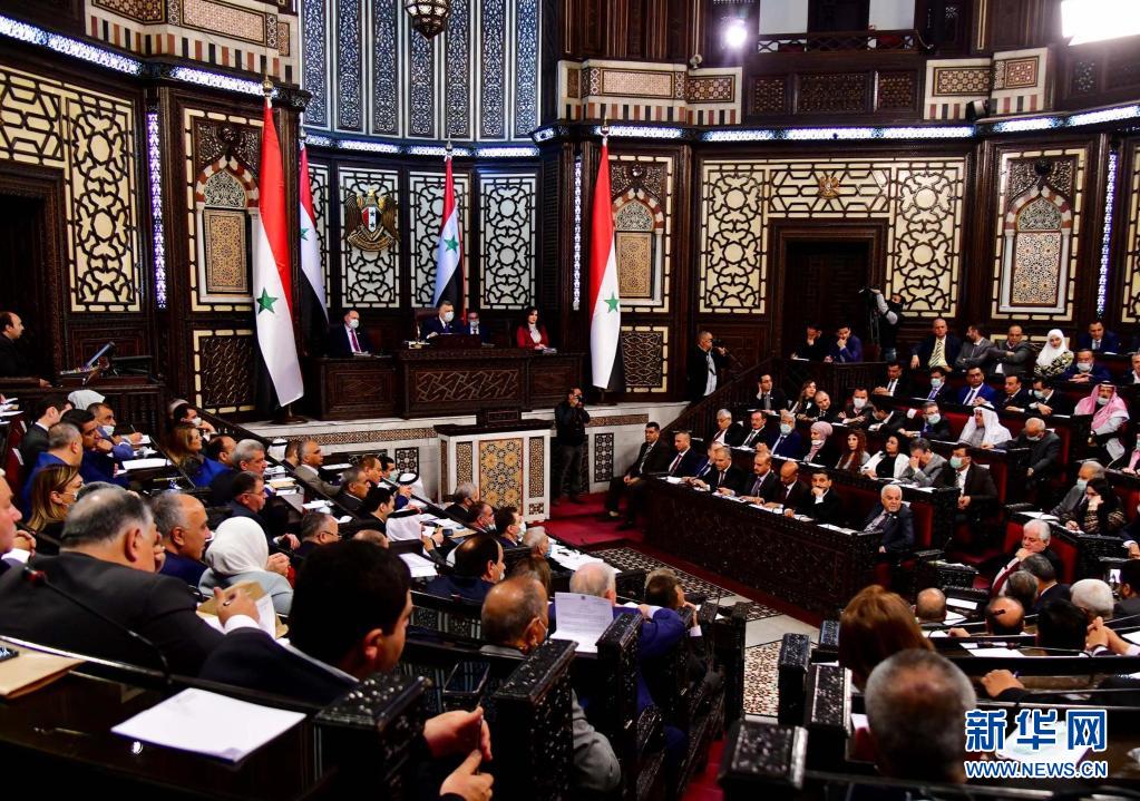 这是4月18日在叙利亚大马士革拍摄的议会会议现场。
