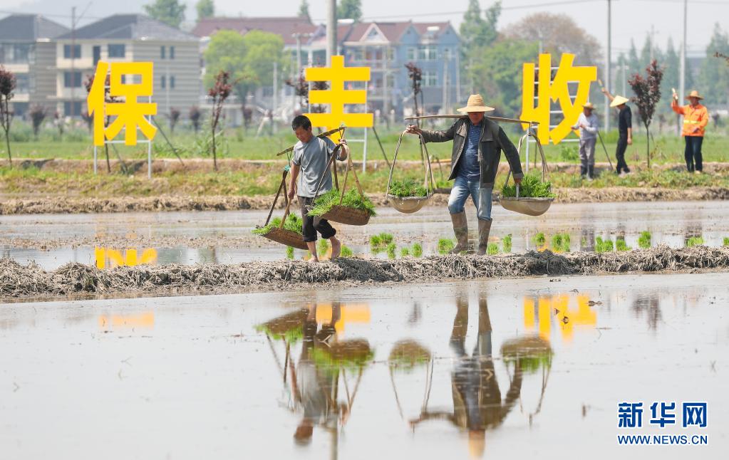 4月19日,村民在浙江省湖州市德清县下渚湖街道和睦村的农田里劳作。