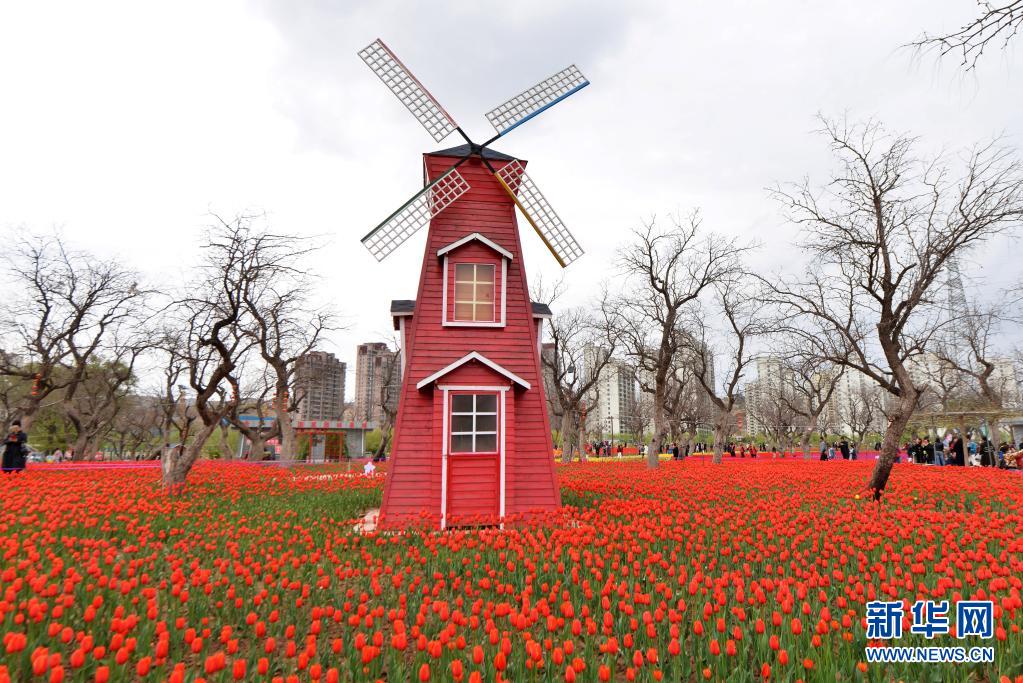 近日,甘肃省永靖县刘家峡镇黄河花堤上种植的大面积郁金香竞相盛开,吸引了大批游客前来踏青赏花。