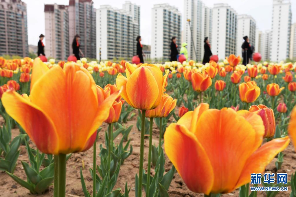 这是4月19日在甘肃省永靖县刘家峡镇拍摄的郁金香。