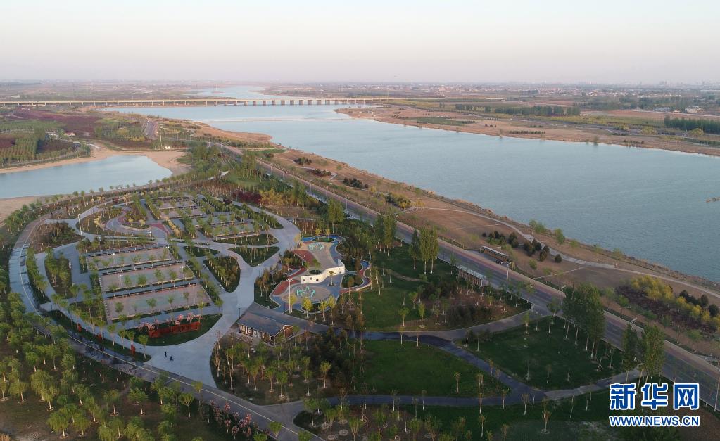 这是4月13日拍摄的生态修复后的滹沱河景色(无人机照片)。