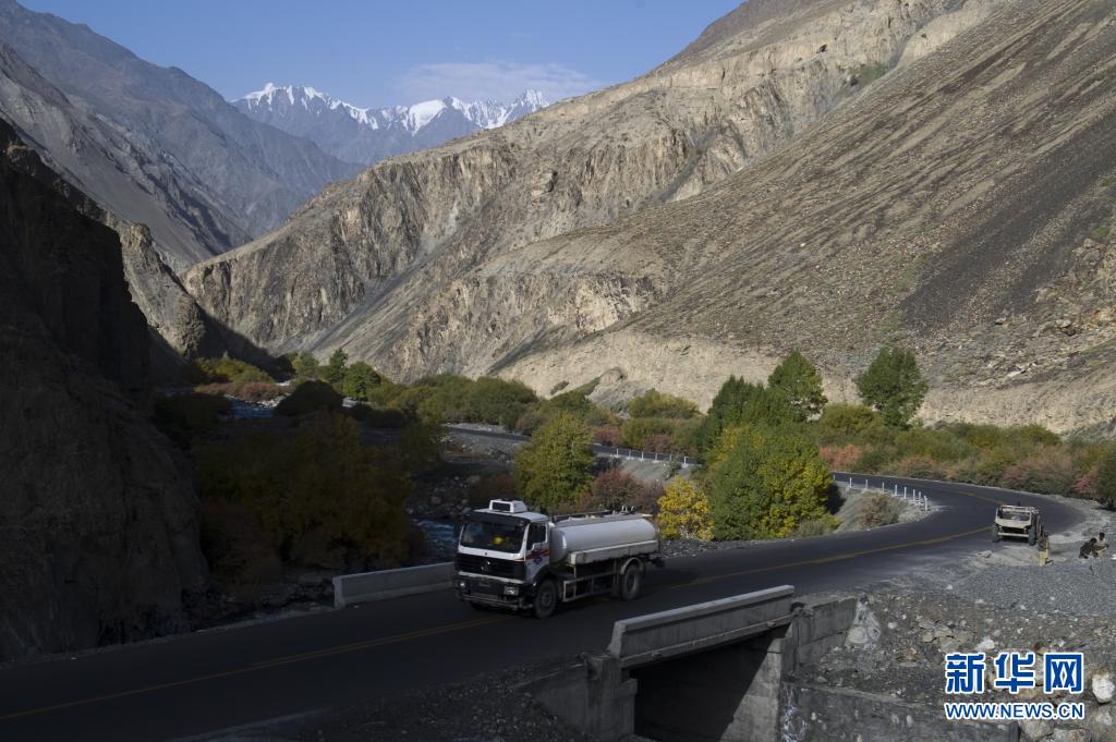 这是车辆行驶在巴基斯坦北部索斯特地区的喀喇昆仑公路上(2013年9月28日摄)。