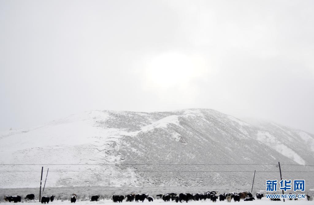 这是4月19日在青海省果洛藏族自治州甘德县拍摄的牦牛群。新华社记者 张曼怡 摄