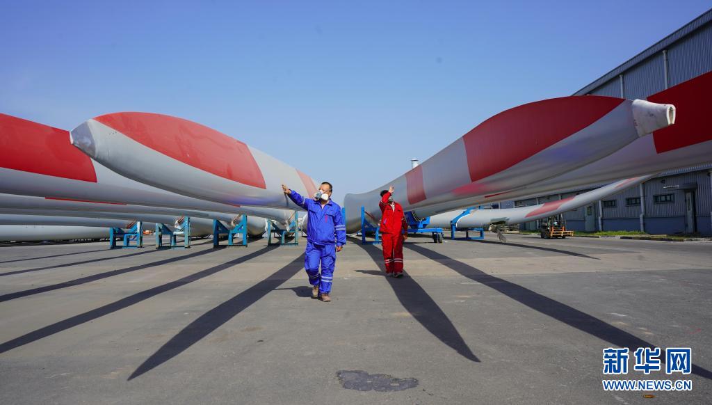 4月19日,在邯郸市中材科技(邯郸)风电叶片有限公司,技术人员对风电叶片进行外观检验。该公司是中材叶片全球布局的第7家工厂,自2015年落地邯郸以来,大力推行自动化、智能制造、绿色制造,已形成建设兆瓦级风电叶片生产线14条。