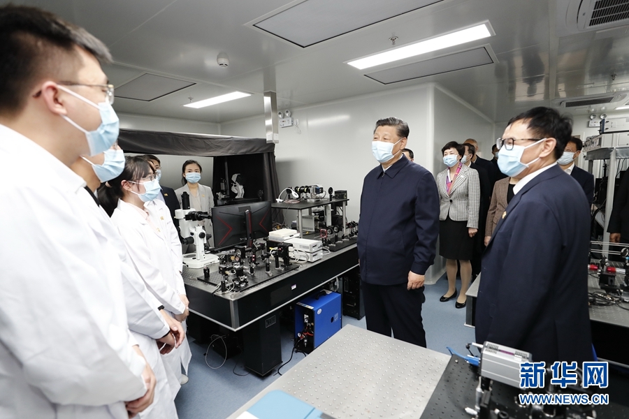 4月19日,在清华大学建校110周年校庆日即将来临之际,中共中央总书记、国家主席、中央军委主席习近平来到清华大学考察。这是习近平在清华大学成像与智能技术实验室同师生们亲切交谈。新华社记者 黄敬文 摄