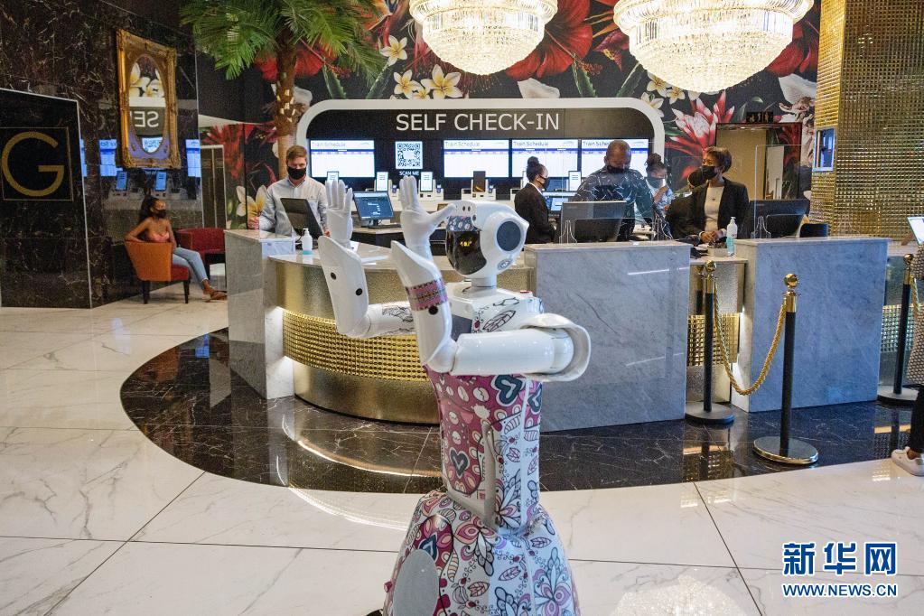 为应对疫情,南非约翰内斯堡一间酒店引入机器人莱克茜,为前来入住的旅客提供免接触式服务。莱克茜可以办理酒店入住、送餐服务、行李服务和旅游景点介绍等多种业务。