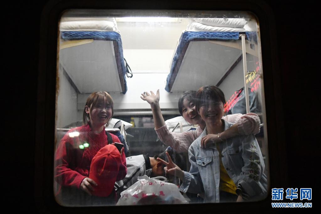 在兰州火车站,西北师范大学589名实习支教生从甘肃兰州启程,乘坐中国铁路兰州局集团公司专门开行的K4091次“支教专列”,奔赴新疆阿克苏地区(2019年3月18日摄)。