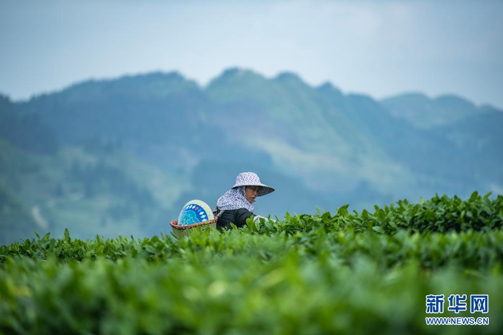 4月20日,茶农在贵州省六盘水市六枝特区落别乡鸿森茶场采摘“谷雨茶”。