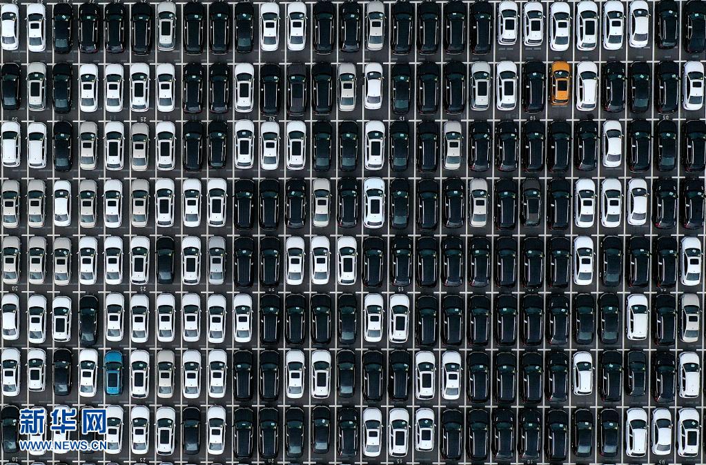 这是2020年9月24日拍摄的停放在大连港大连汽车码头有限公司港口停车场的新车(无人机照片)。新华社记者 姚剑锋 摄